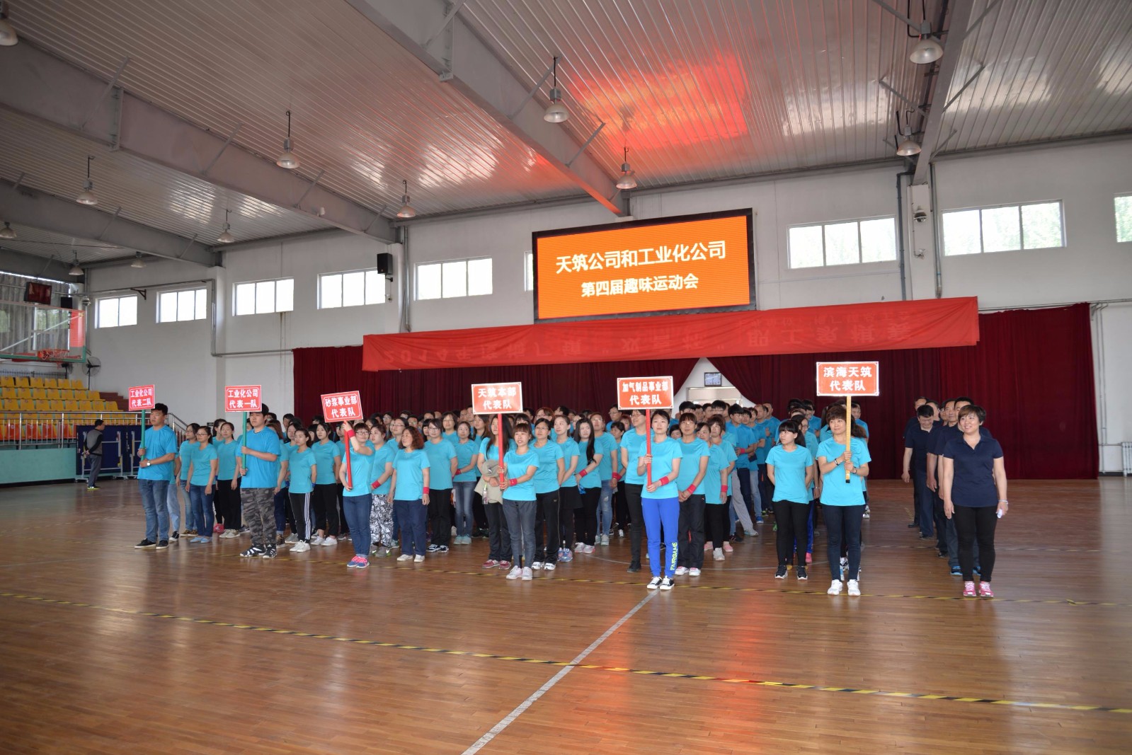 4月26日,天筑公司和工业化公司第四届趣味运动会在梅厂体育馆正式开幕。下午一点,入场式开始,伴随着《运动员进行曲》,天筑公司三个代表队、工业化公司两个代表队、滨海天筑公司一个代表队的运动员方阵依次通过主席台,运动员们着装整齐,精神抖擞,嘹亮的口号,整齐的步伐和自信的笑容,展示了员工们积极向上的精神风貌。